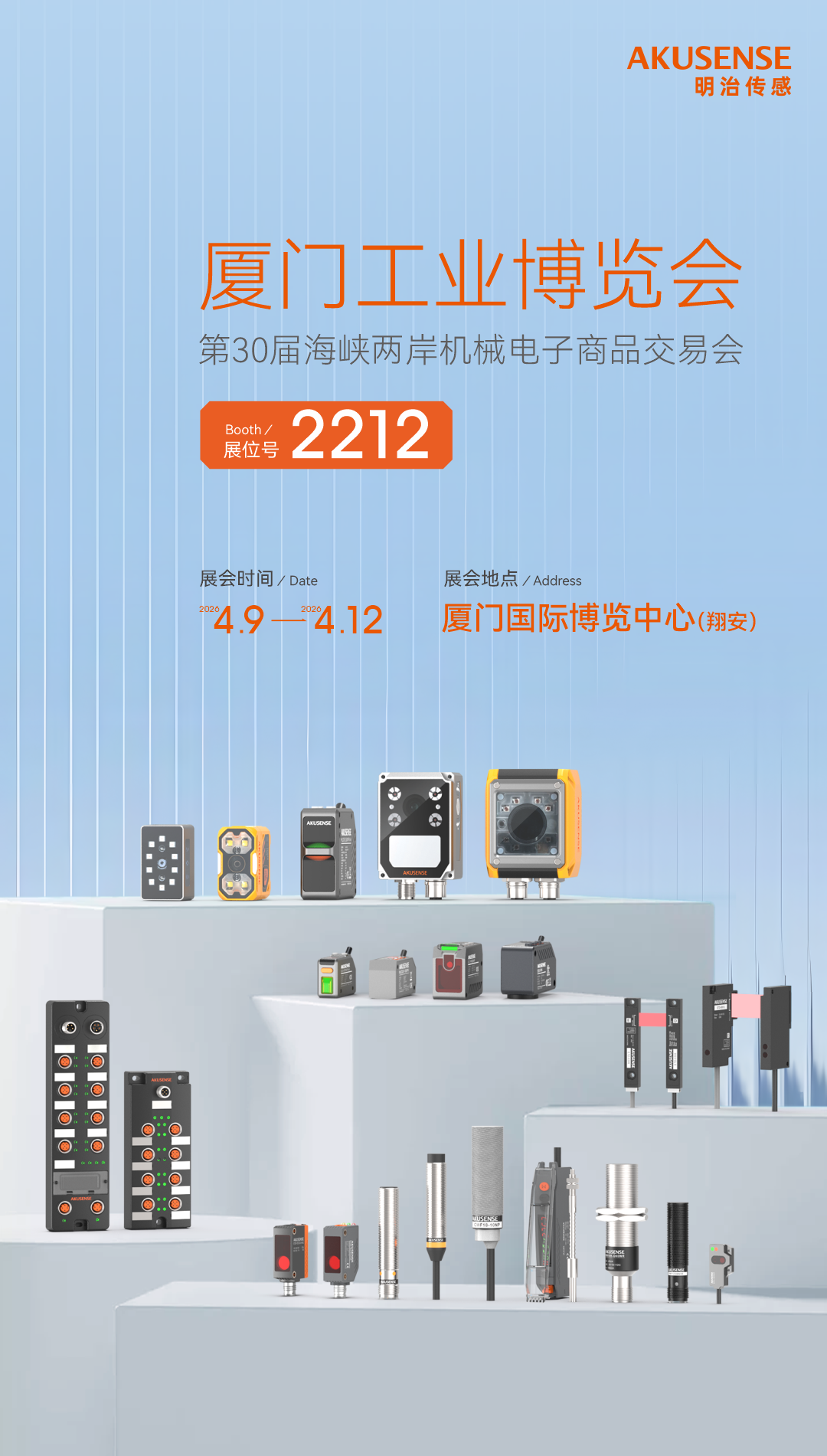 4月9日-12日,明治传感将携多款核心产品重磅登陆厦门工博会,全面展示在光电传感、AI视觉、智能通信及恶劣工况应用等领域的突破性解决方案,助力制造业向智能化、柔性化、高效化升级!